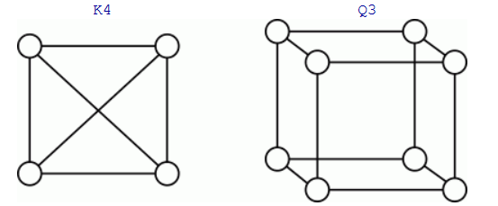 K4 and Q3 are graphs with the following structures.